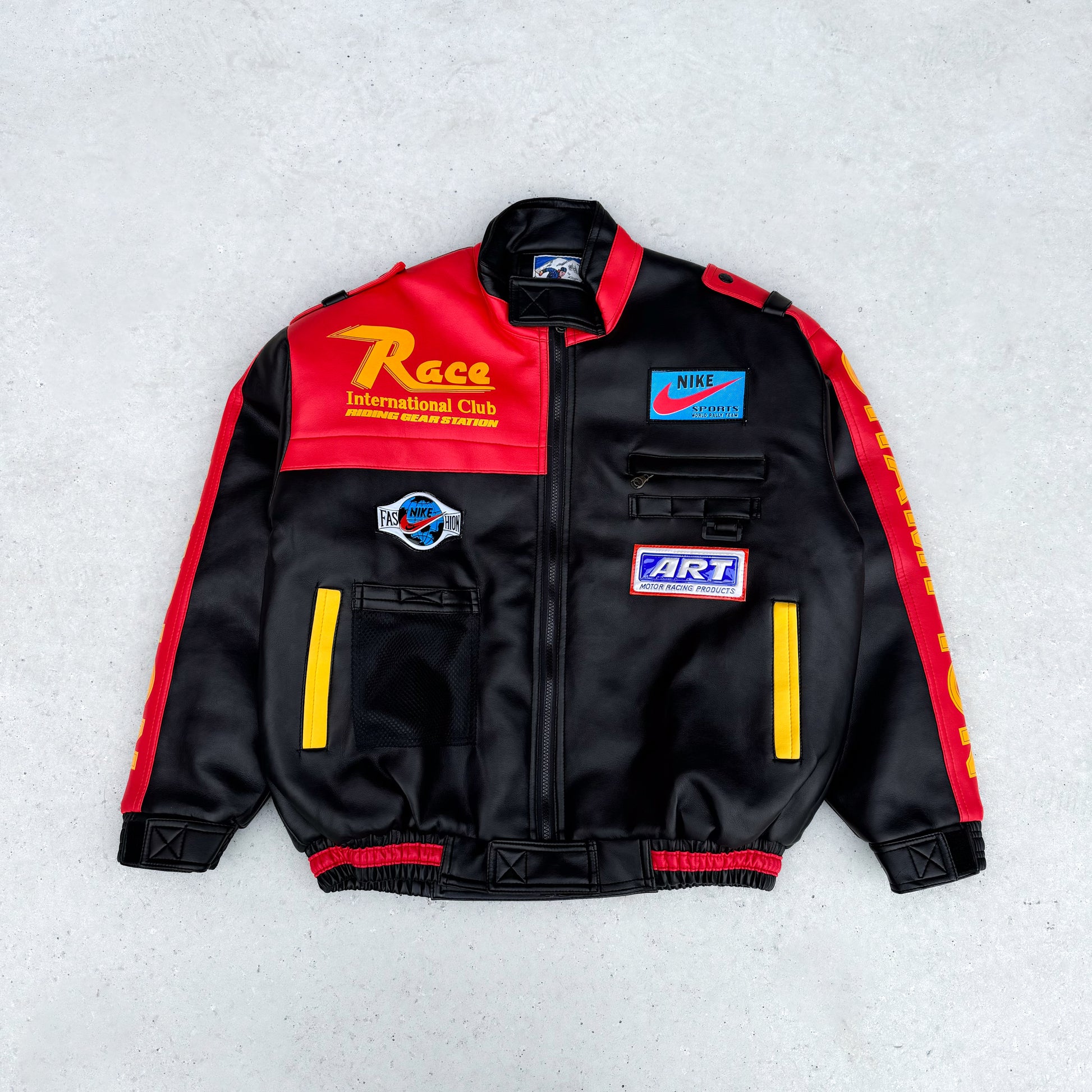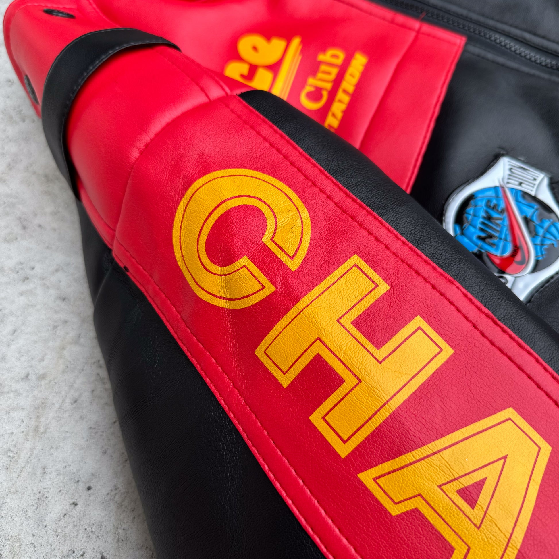 Vintage læderjakke med Nike patches (XL)